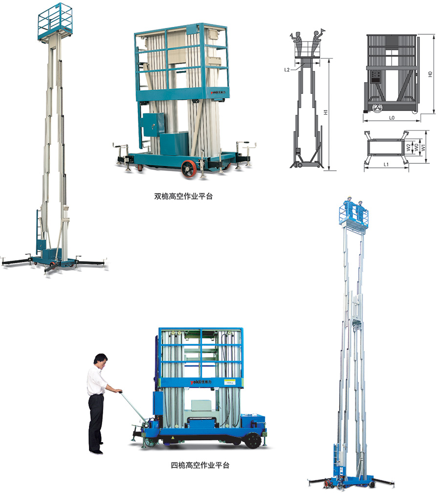 ● 高強度鋁合金型材制作而成的升降桅柱使整機輕便靈活。